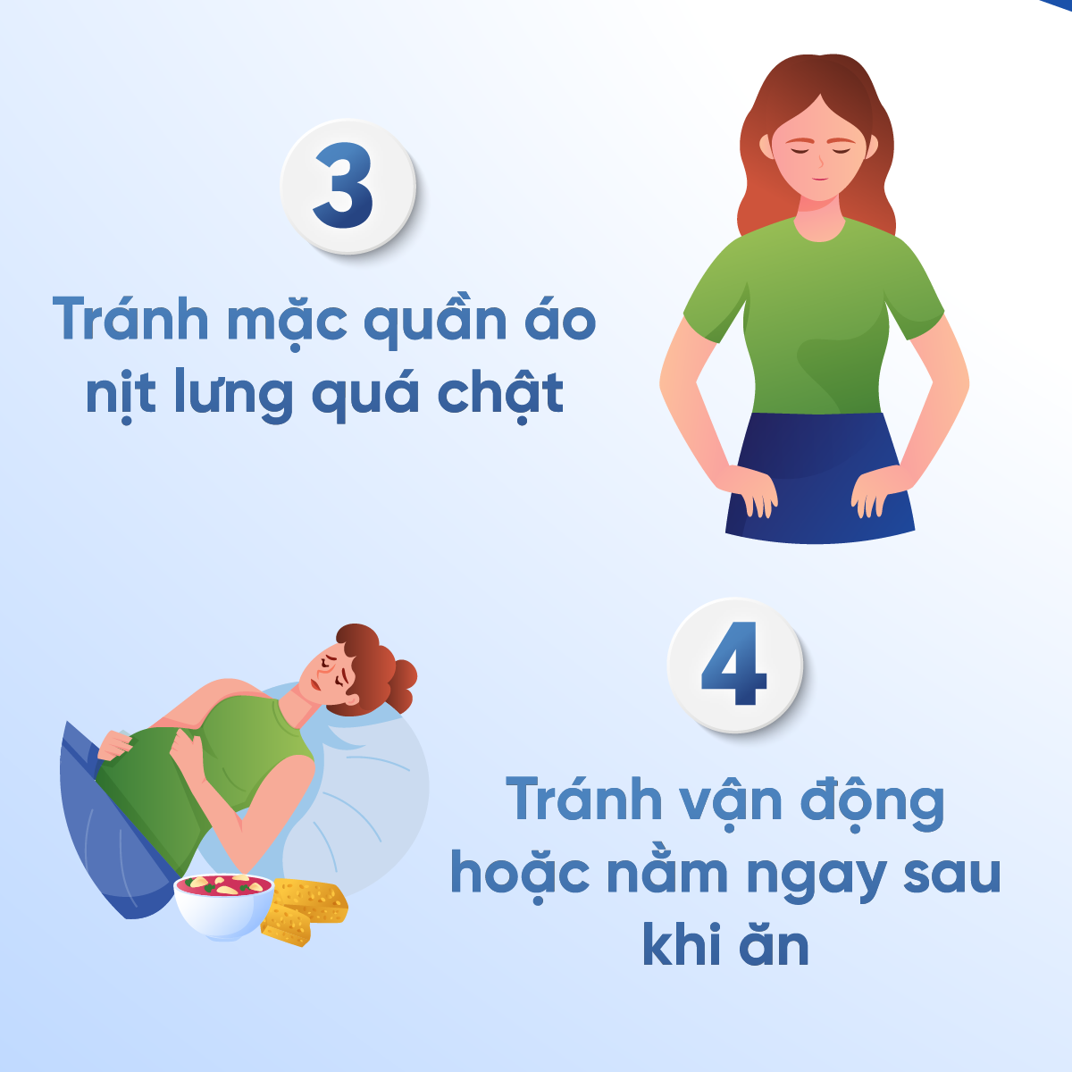 – Tránh vận động, lái xe hoặc nằm ngay sau khi ăn