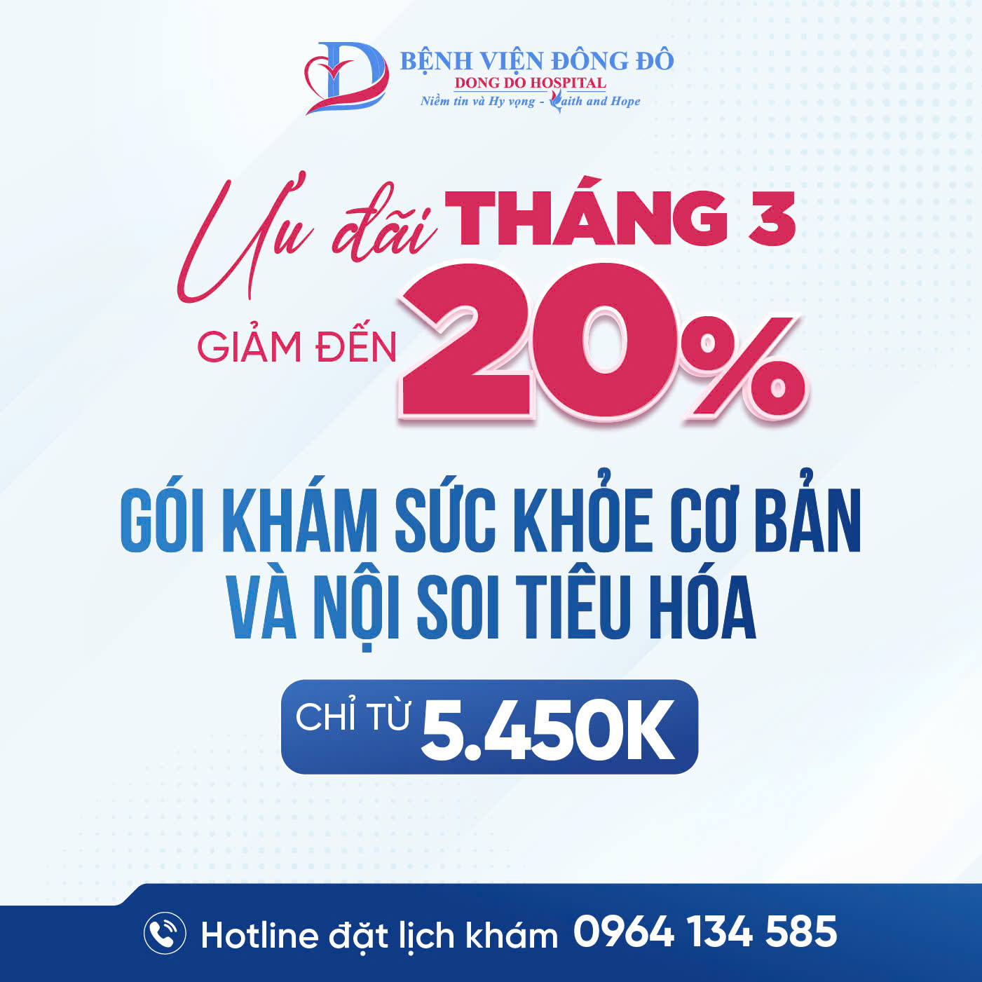 Ưu đãi tháng 3: Giảm đến 20% gói khám sức khỏe cơ bản & nội soi tiêu hóa