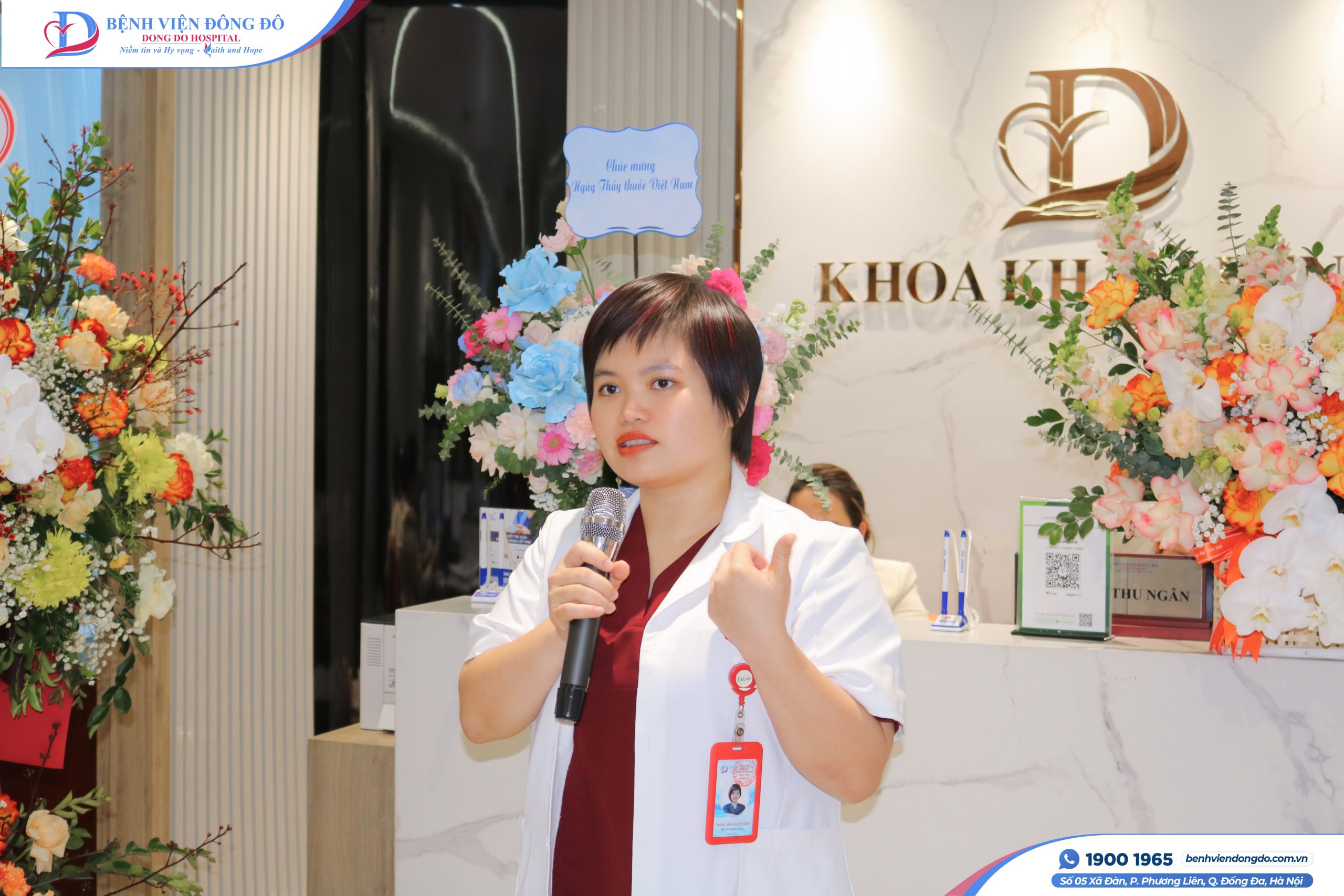 Tai buổi lễ, thay mặt Ban lãnh đạo Bệnh viện, Ths. Bs. Đinh Thị Phương Thuỷ – Giám Đốc điều hành Bệnh viện Đông Đô cùng Bs CKI Tăng Đức Cương – Giám đốc chuyên môn Bệnh viện Đông Đô đã ghi nhận biểu dương và trân trọng những nỗ lực không ngừng, những “hi sinh thầm lặng” cùng tình yêu nghề nghiệp của các bác sĩ, cán bộ nhân viên y tế Bệnh viện Đông Đô. Sự cống hiến đó là sự tiếp nối truyền thống quý báu của bao thế hệ dày công vun đắp, như lời Chủ tịch Hồ Chí Minh vĩ đãi nhắn gửi “Lương y như từ mẫu – Thầy thuốc như mẹ hiền”.
