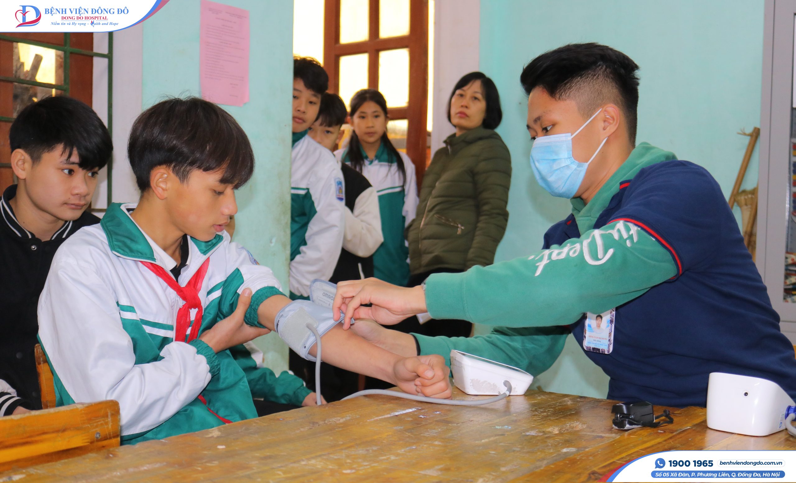 Đặc biệt, Bệnh viện Đông Đô đã tổ chức hoạt động thăm khám, đo huyết áp, kiểm tra tim, tư vấn, cấp phát thuốc miễn phí cho các em học sinh. Chương trình thăm khám nhằm phát hiện sớm các bệnh liên quan đến tim mạch cho các em.