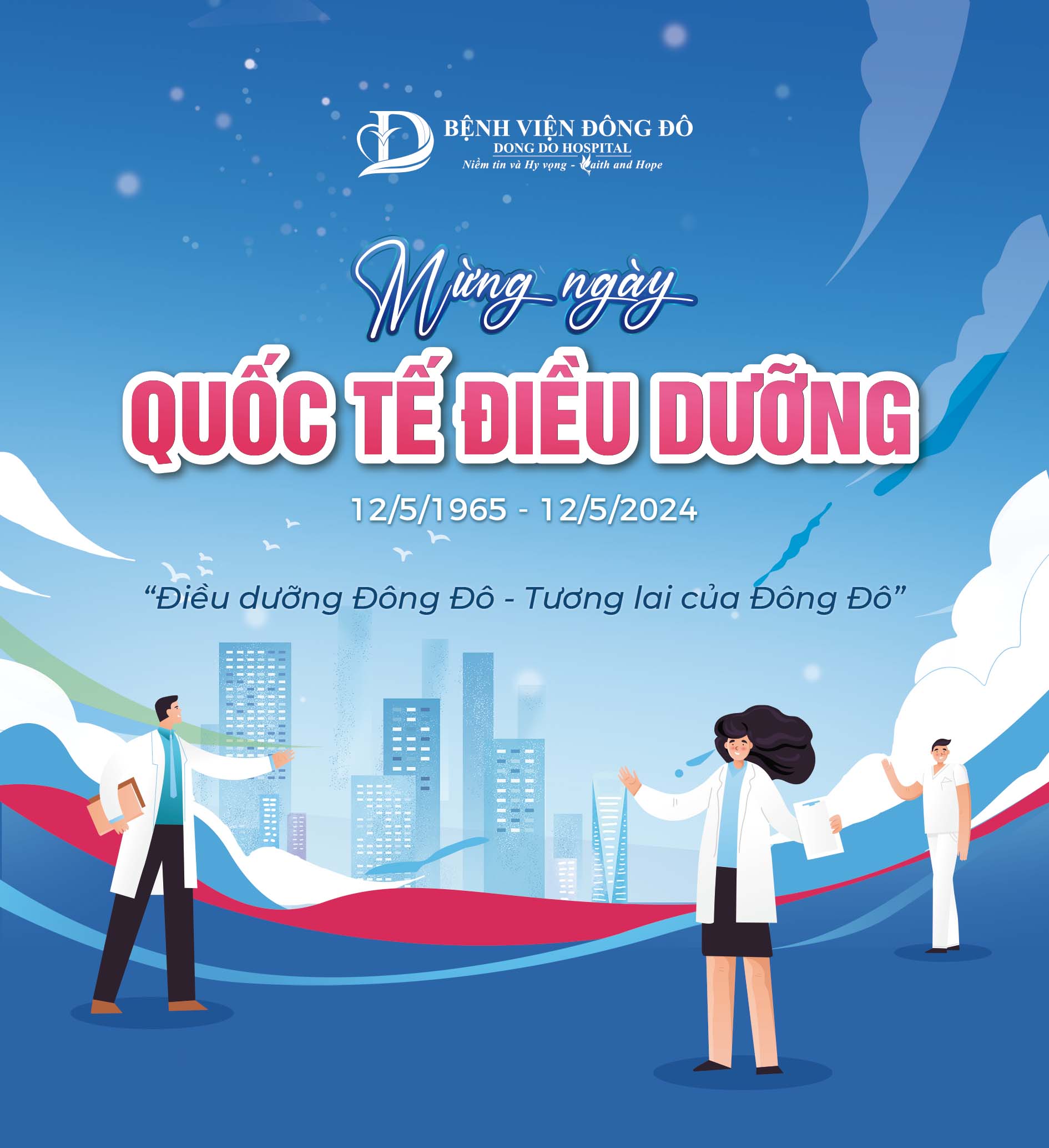 Nhân ngày Quốc tế Điều dưỡng 12/05, chúc các điều dưỡng, kỹ thuật viên nhiều sức khỏe, nhiều niềm vui, hạnh phúc để hết lòng phục vụ người bệnh. Như Ths. Bs. Đinh Thị Phương Thuỷ – Giám đốc điều hành Bệnh viện Đông Đô đã chia sẻ ý nghĩa, vai trò của các điều dưỡng, kỹ thuật viên với thông điệp ấn tượng: “Điều dưỡng Đông Đô – Tương lai của Đông Đô”. Trong đó nhấn mạnh các vấn đề: “Đầu tư – Bảo vệ – Tôn trọng – Giá trị”.
