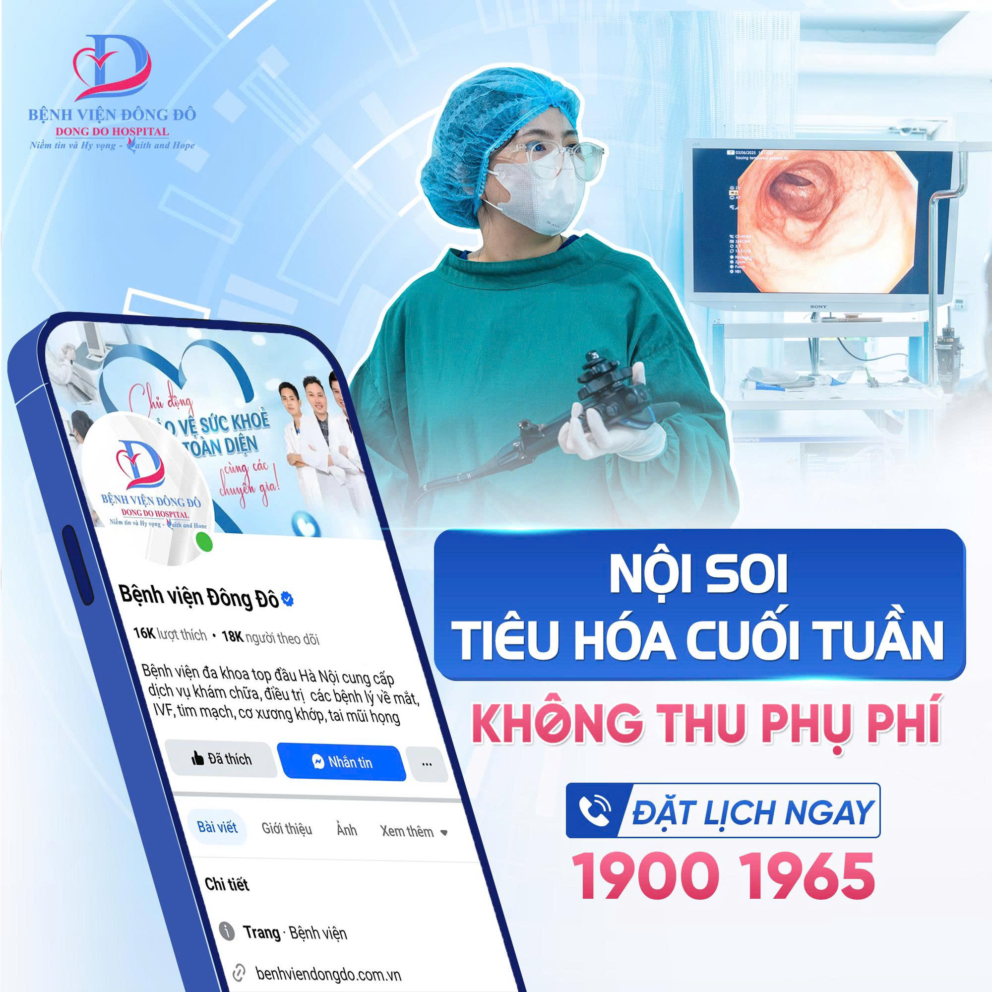 Đừng lo! Nội soi Tiêu hóa Thứ 7 – Chủ nhật tại Bệnh viện Đông Đô với chi phí không đổi, không phụ phí phát sinh!!!