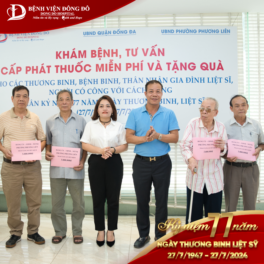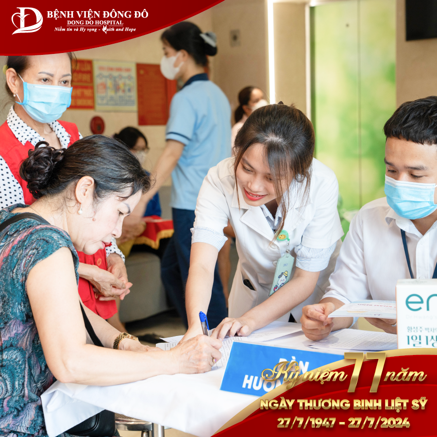 Trong những ngày tháng tri ân lịch sử hào hùng của dân tộc ta 27/07, thay lời tri ân sâu sắc nhất Bệnh viện Đông Đô đã tổ chức buổi khám bệnh, tư vấn, cấp phát thuốc miễn phí và trao tặng những phần quà thiết thực gửi tới các mẹ Việt Nam anh hùng, anh hùng lực lượng vũ trang nhân dân, các thương binh, bệnh binh, thân nhân các gia đình liệt sỹ, người có công với cách mạng.