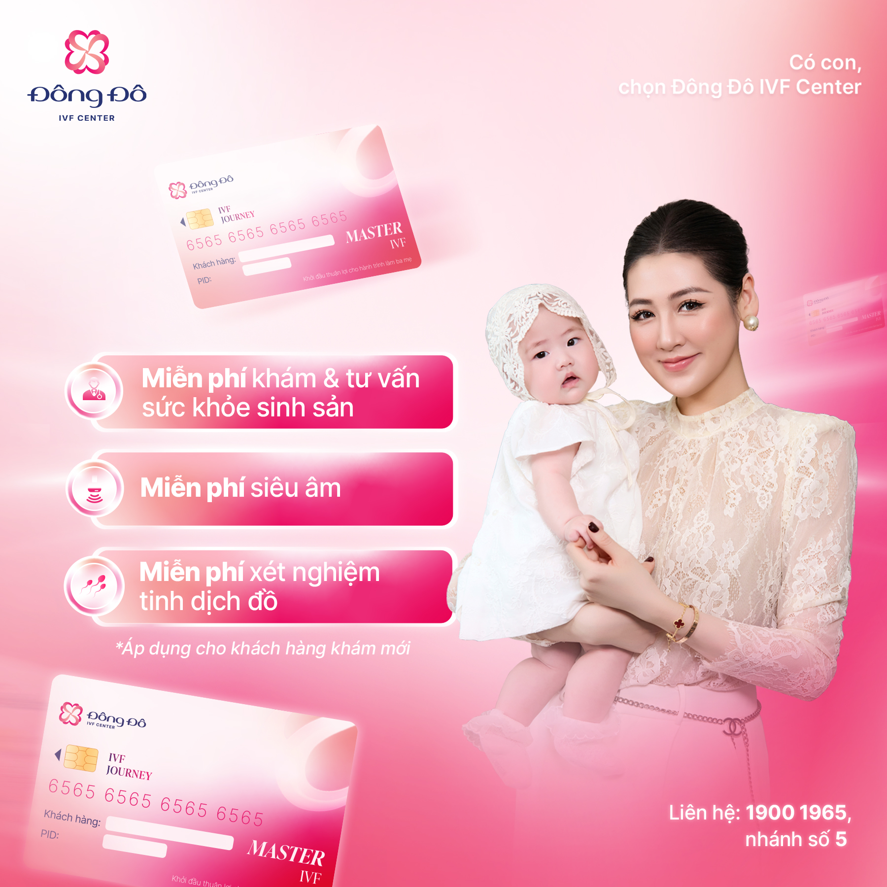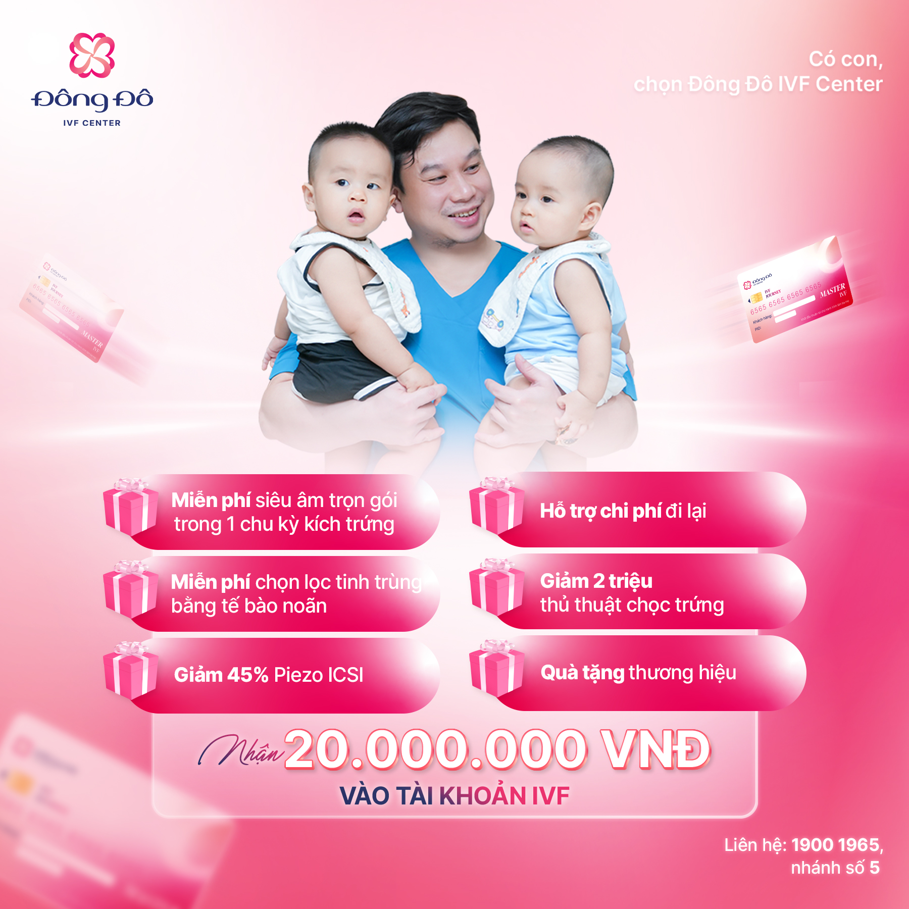 TẶNG THẺ IVF – Nhận ngay 20 triệu đồng vào tài khoản. 100% KHÁCH HÀNG KHÁM VÀ NHẬN THẺ IVF – Khởi đầu thuận lợi cho hành trình làm ba mẹ! Thời gian áp dụng từ 01/07 – 31/07/2025.