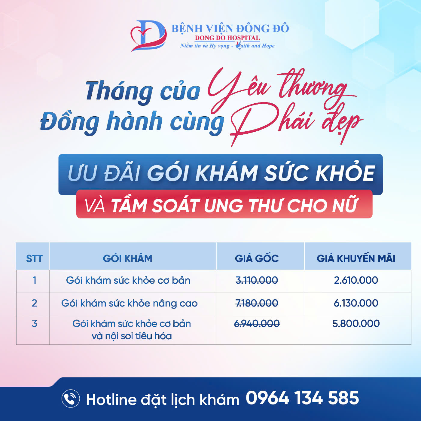 Đừng bỏ lỡ cơ hội chăm sóc sức khỏe toàn diện với chi phí tiết kiệm tại Bệnh viện Đông Đô. Liên hệ ngay hotline 0964 134 585 để đặt lịch khám và nhận tư vấn chi tiết.