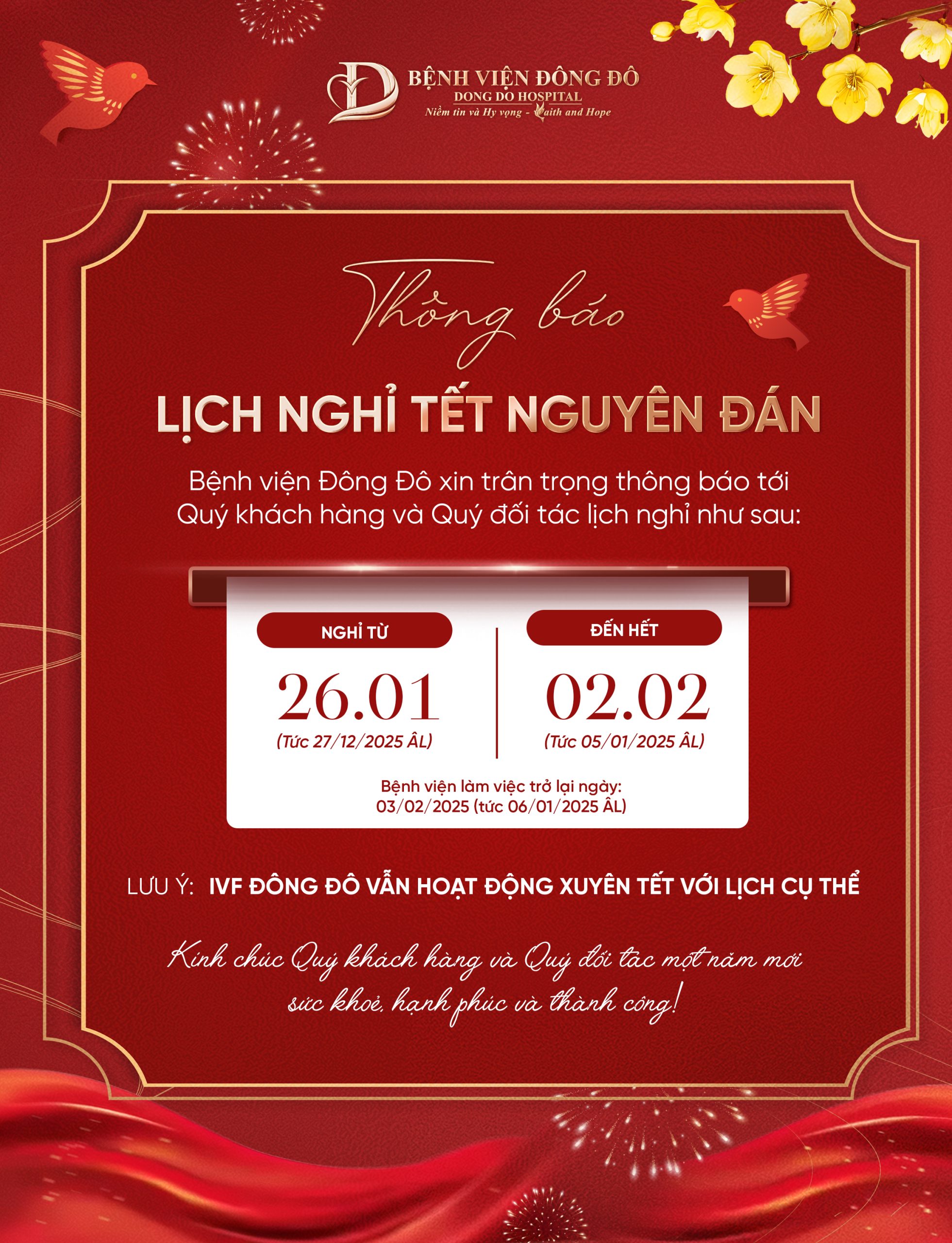 Thông báo lịch nghỉ TẾT NGUYÊN ĐÁN Bệnh viện Đông Đô xin trân trọng thông báo tới Quý khách hàng và Quý Đối tác lịch nghỉ Tết Nguyên Đán Ất...