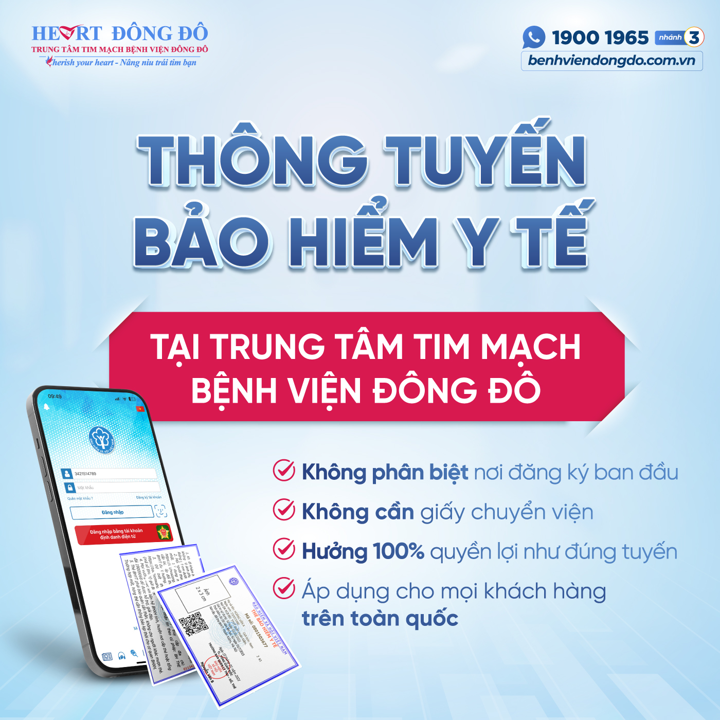 THÔNG TUYẾN BẢO HIỂM Y TẾ tại Trung tâm tim mạch Bệnh viện Đông Đô