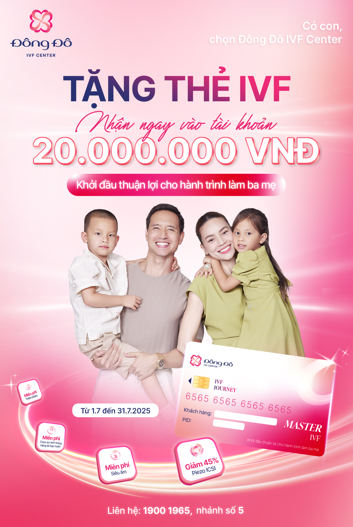TẶNG THẺ IVF – Nhận ngay 20 triệu đồng vào tài khoản. 100% KHÁCH HÀNG KHÁM VÀ NHẬN THẺ IVF – Khởi đầu thuận lợi cho hành trình làm ba mẹ! Thời gian áp dụng từ 01/07 – 31/07/2025.
